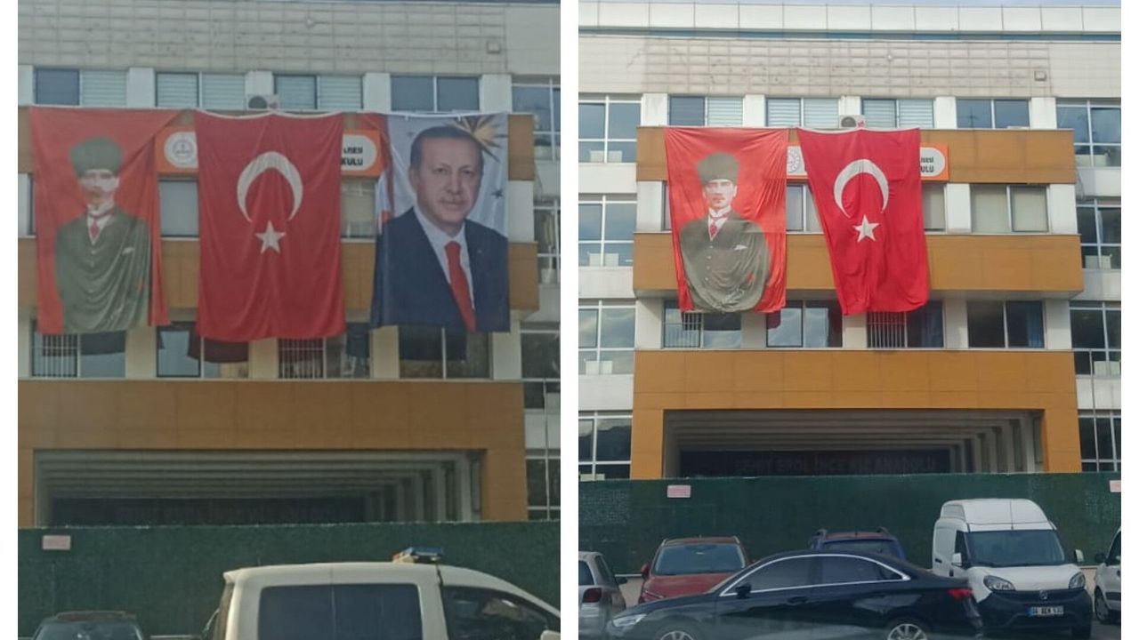 Milli Eğitim Bakanlığı'nın (MEB), 29 Ekim Cumhuriyet Bayramı kutlamaları kapsamında okullara Atatürk posteri ve Türk bayrağının yanı sıra Ak Partili Cumhurbaşkanı Recep Tayyip Erdoğan'ın posterinin de asılması yönünde talimat gönderdiği iddiaları sürerken, benzer bir olay bu kez İstanbul Ümraniye'de yaşandı.