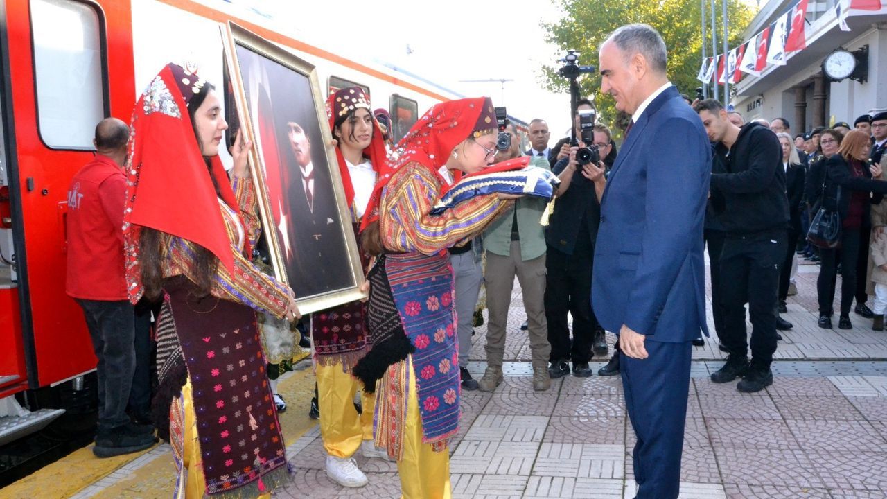 Kutlama programı, Manisa Tren Garı'nda temsili karşılama töreniyle başladı. Tren garına gelen Türk Bayrağı, öğrenciler tarafından Vali Vahdettin Özkan'a takdim edildi. Halk oyunları ekibi ise zeybek gösterisiyle etkinliğe renk kattı.