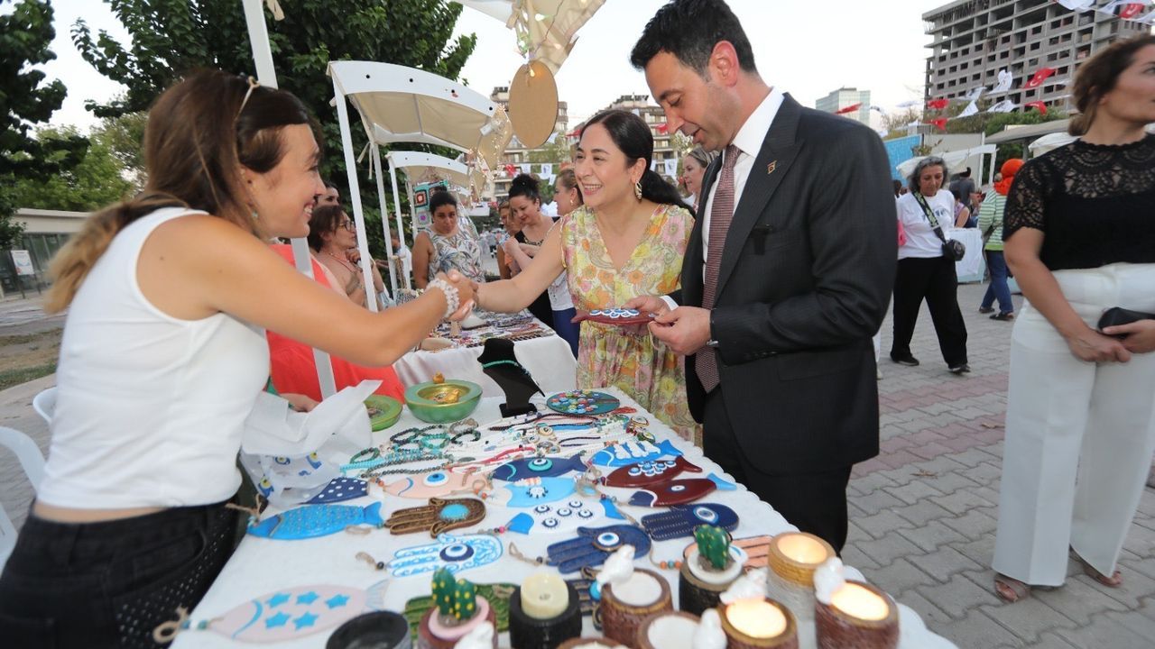 Bayraklı Belediyesi Sosyal Yardım İşleri Müdürlüğü, kadın girişimcilerin üretimlerini desteklemek amacıyla el emeği ürünlerini ziyaretçilerle buluşturuyor. Kadınların yaratıcılıklarını yansıttığı takı tasarımları, ev aksesuarları ve hediyelik eşyaların yanı sıra; ev yapımı kete, kurabiye, sarma gibi yöresel lezzetler de ziyaretçilere sunulacak.