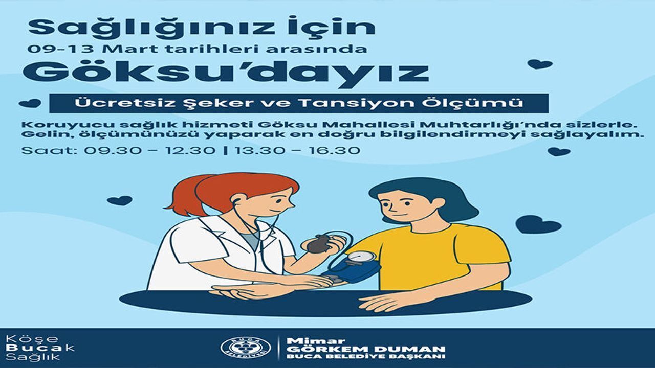 İlk durağı Göksu Mahallesi Muhtarlığı olacak proje kapsamında 9-13 Mart tarihleri arasında vatandaşlara ücretsiz şeker ve tansiyon ölçümü yapılacak.