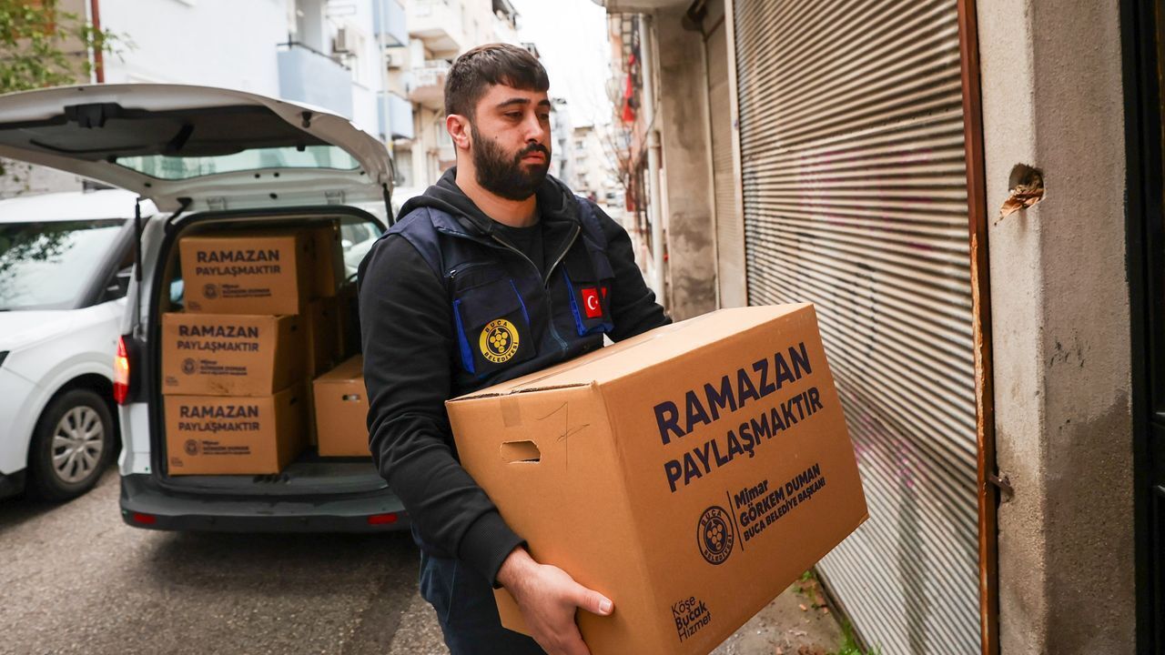 Buca Belediyesi, ilçede dayanışma ruhunu büyüten çalışmalarına devam ediyor. Belediye, ilçe genelinde ihtiyaç sahibi ailelerin temel mutfak ihtiyaçlarını karşılayacak bakliyat çeşitleri, pirinç, bulgur, çay, şeker ve makarna gibi ürünlerin yer aldığı gıda kolilerinin dağıtımına başladı. Ayrıca, Ramazan ayı boyunca her akşam Şirinyer Düğün Salonu'nda iftar sofrası kurulacağı duyuruldu.