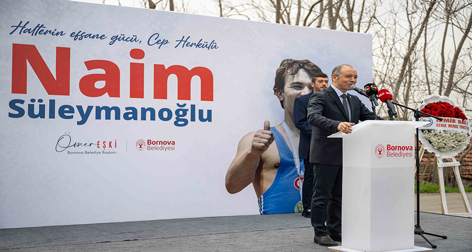 Bornova Belediye Başkanı Ömer Eşki, konuşmasında hem Pınar Caddesi'nin dönüşüm sürecini hem de Naim Süleymanoğlu'nun simgesel gücünü şu sözlerle anlattı: