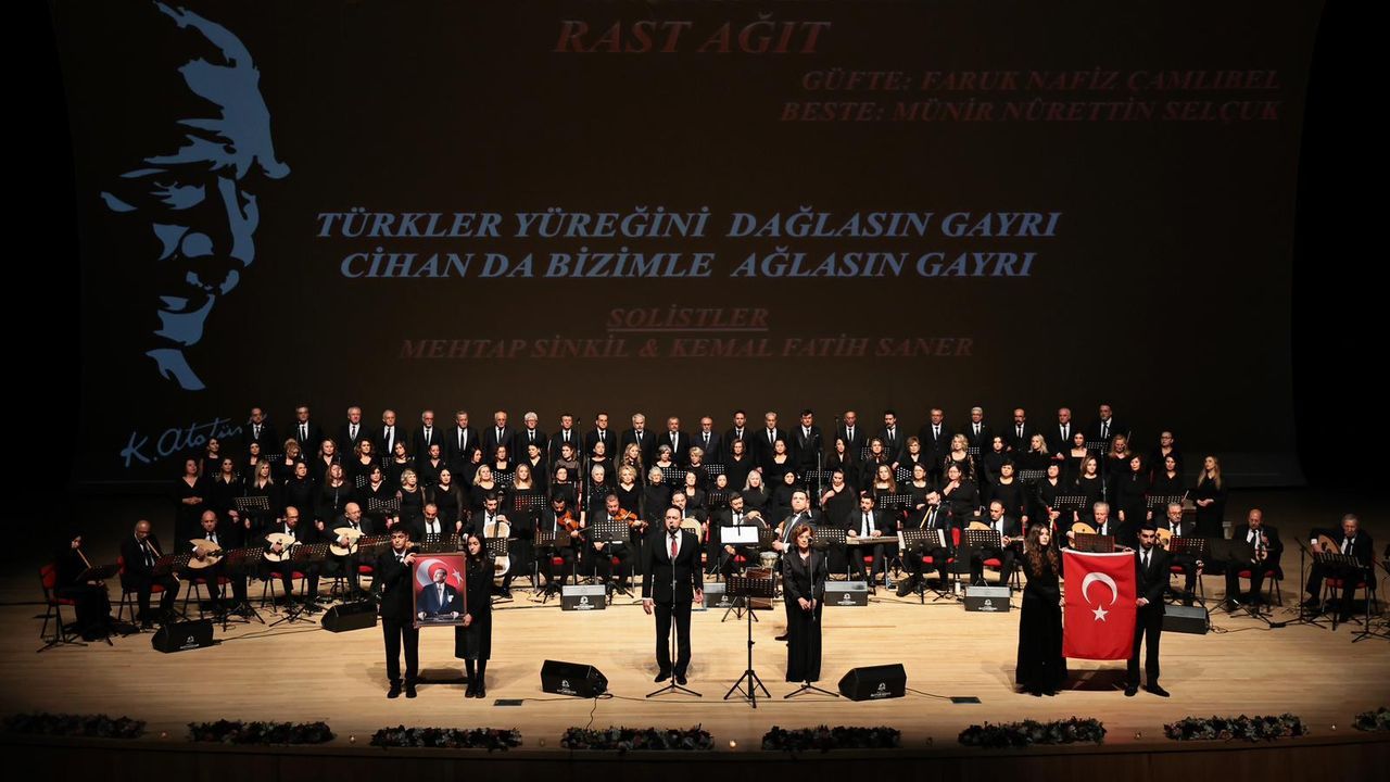 Koro Şefi Ahmet Nuri Çağdaş'ın yönetiminde, Atatürk'ün sıkça dinlediği, zamanın ötesinden gelen o unutulmaz Türk Sanat Müziği eserleri, salonu dolduran yüzlerce kişi için adeta bir zaman yolculuğu sundu. Her bir notanın duyguyla yoğrulduğu konser, Denizli Büyükşehir Belediyesi Kongre ve Kültür Merkezi'nde gerçekleşti ve etkinliğe katılanlara derin bir saygı ve özlemle örülmüş, unutulmaz bir akşam yaşattı. İzleyiciler, gece boyunca eserlere hep bir ağızdan eşlik etti.