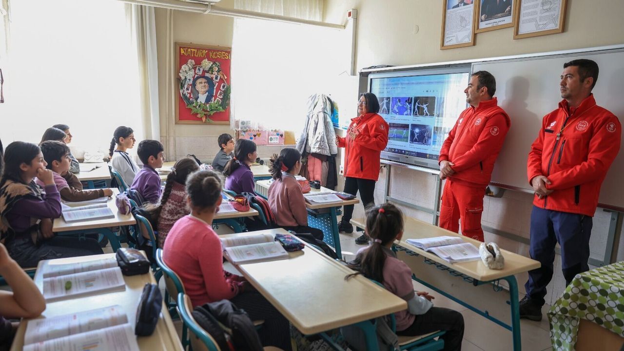 Ekipler, gelen talep doğrultusunda Yunus Emre İlkokulu'nda öğrencilere ve öğretmenlere yönelik kapsamlı bir deprem ve afet bilinci eğitimi gerçekleştirdi.