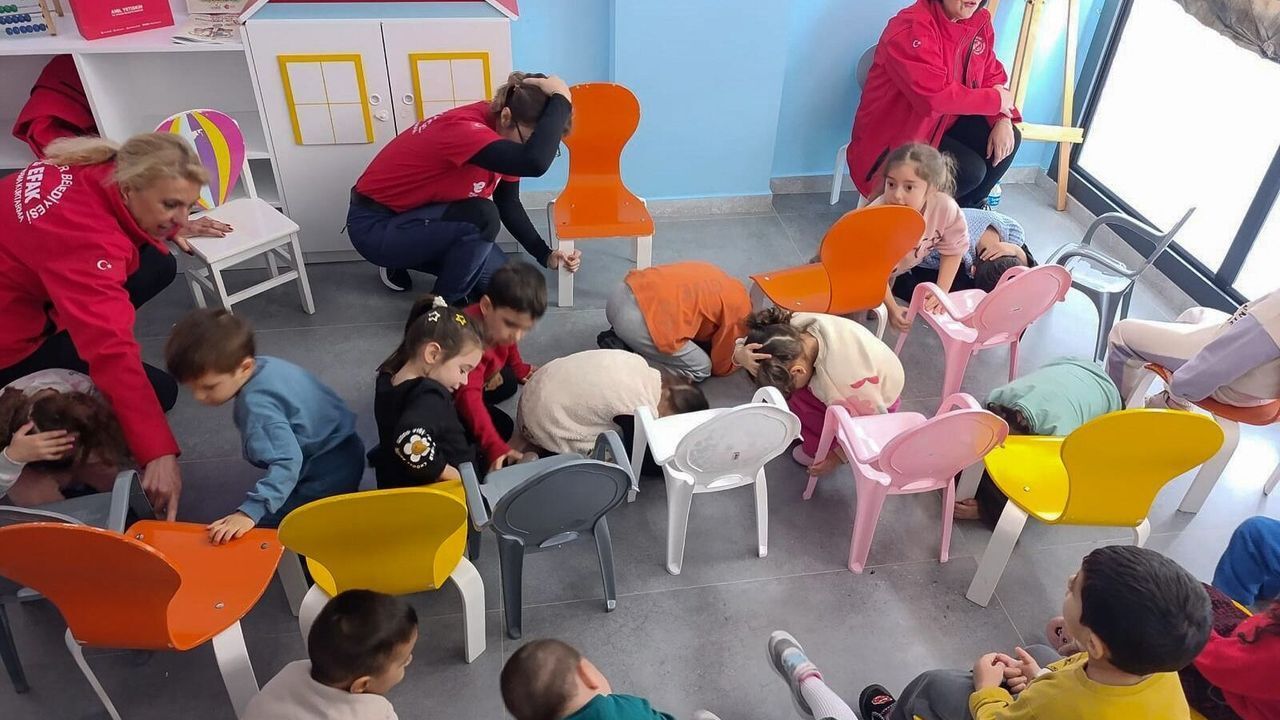 Çocuklar, afet anında 'çök-kapan-tutun' hareketini nasıl yapacaklarını öğrenirken, güvenli tahliye süreçlerini de uygulamalı tatbikatlarla deneyimledi. Eğitimin her aşaması, çocukların yaş gruplarına uygun, sade ve anlaşılır bir dille gerçekleştirildi.