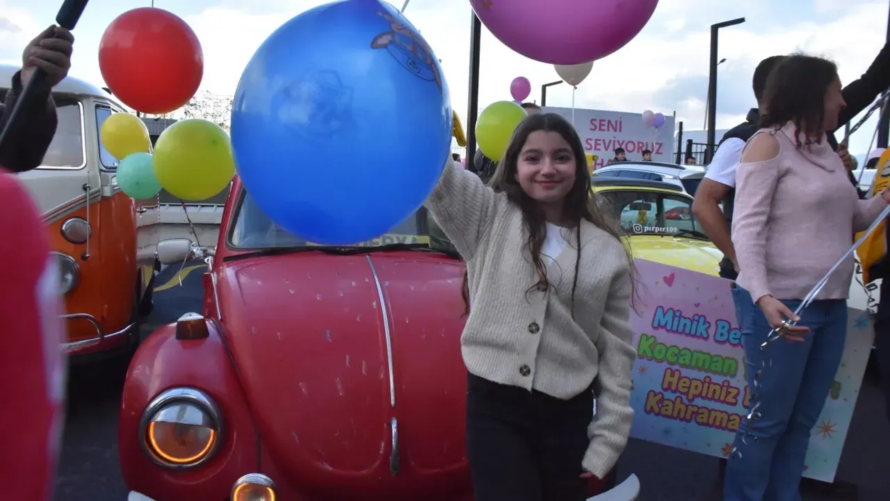 Aksaray'da yaşayan Uğur ve Tülay Öztürk çiftinin üçüncü çocuğu olan Beyza Öztürk'e, yaklaşık bir ay önce yüksek ateş şikâyetiyle başvurulan hastanede yapılan tetkiklerin ardından lenfoma teşhisi konuldu. Birinci sınıfa ara vermek zorunda kalan Beyza, İzmir Şehir Hastanesi'nde yatarak tedavi görüyor. Minik Beyza, gönüllülerin hastane bahçesinde gerçekleştirdiği balon uçurma etkinliğini babası Uğur Öztürk'ün cep telefonundan yaptığı görüntülü arama aracılığıyla takip etti.
