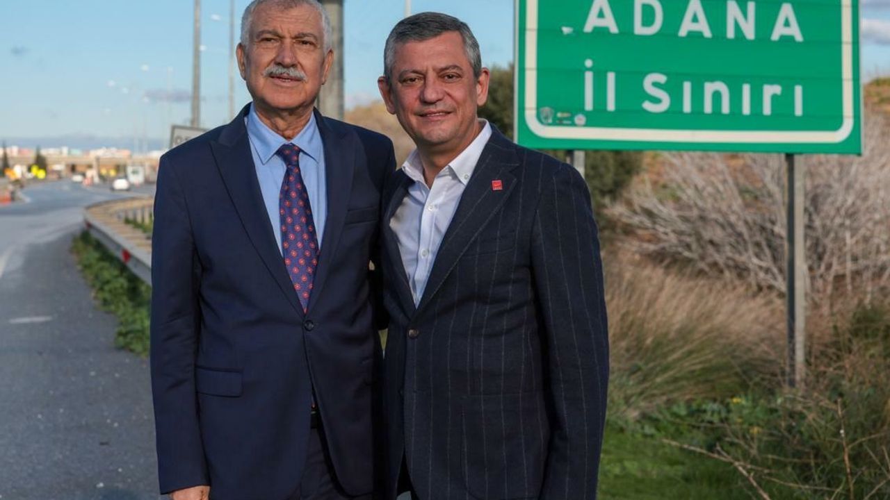 Tahliye edilen Adana Büyükşehir Belediye Başkanı Zeydan Karalar ile yurttaşlarla bir araya gelmek üzere Adana'ya giden Özel'i, il sınırında Zeydan Karalar karşıladı.