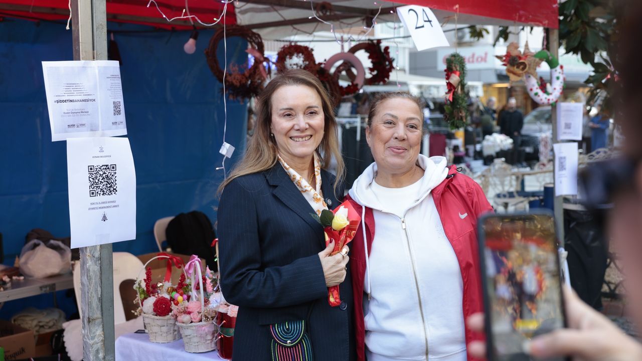 Konak Belediyesi'nin yılbaşı öncesi heyecanla beklenen, kadınların el emeğini görünür kılan ve sevdiklerini yeni yıla özel hediyelerle mutlu etmek isteyenlerin yüzünü güldüren Yeni Yıl El Emeği Kermesi Dominik Caddesi'nde kuruldu. Hafta sonunda, birbirinden renkli stantlarıyla açık olacak kermes, Alsancak'ta yeni yıl havası estirdi. Kadın üreticilerin el emeği ürünlerini değerlendirme fırsatı bulduğu kermes sayesinde cadde esnafının da satışları arttı. Kermesin ilk gününde stantları ziyaret eden Konak Belediye Başkanı Nilüfer Çınarlı Mutlu, üretici kadınlara tek tek uğrayarak bereketli bir satış dileğinde bulundu. Kermesten alış veriş yapan vatandaşla da sohbet eden Başkan Mutlu, 'Geçtiğimiz yıl olduğu gibi bu yıl da kermesimizin odağında kadın emeğinin görünür olması var. Sevdiklerine yeni yılda hediye almak isteyen herkesi kermesimize bekliyoruz ki emek hem görünür olsun ve değer kazansın hem de yeni yıla dayanışmanın gücüyle girelim' ifadelerini kullandı.