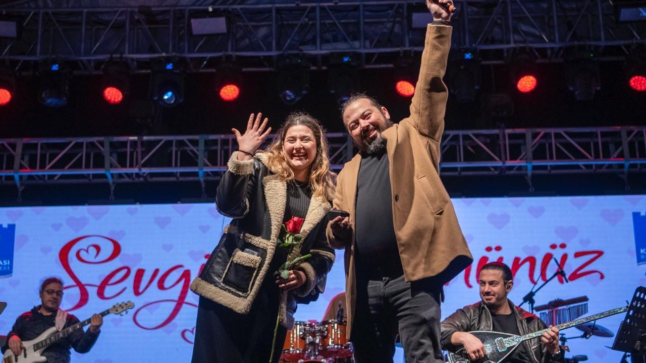 Konserde 32 yaşındaki Metin Akgül sahnede diz çöküp, 2 yıldır birlikte olduğu sevgilisi İlayda Ayaydın'a evlenme teklif etti.