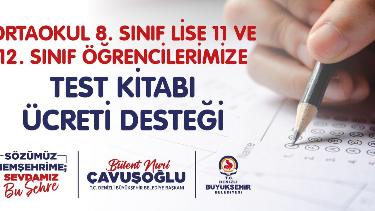 Denizli Büyükşehir Belediye Başkanı Bülent Nuri Çavuşoğlu'nun dar gelirli ailelerin bütçelerini sarsan sınav masraflarını azaltmak ve eğitimde fırsat eşitliğine katkı sunmak için hayata geçirdiği projeye www.denizli.bel.tr veya https://apps.denizli.bel.tr/testkitabibasvuru/ adresinden online müracaat yapılıyor. Denizli il sınırları içerisinde ikamet eden ve belirtilen şartları taşıyan öğrencilerin müracaatlarını 31 Aralık 2025'e kadar yapması gerekiyor.