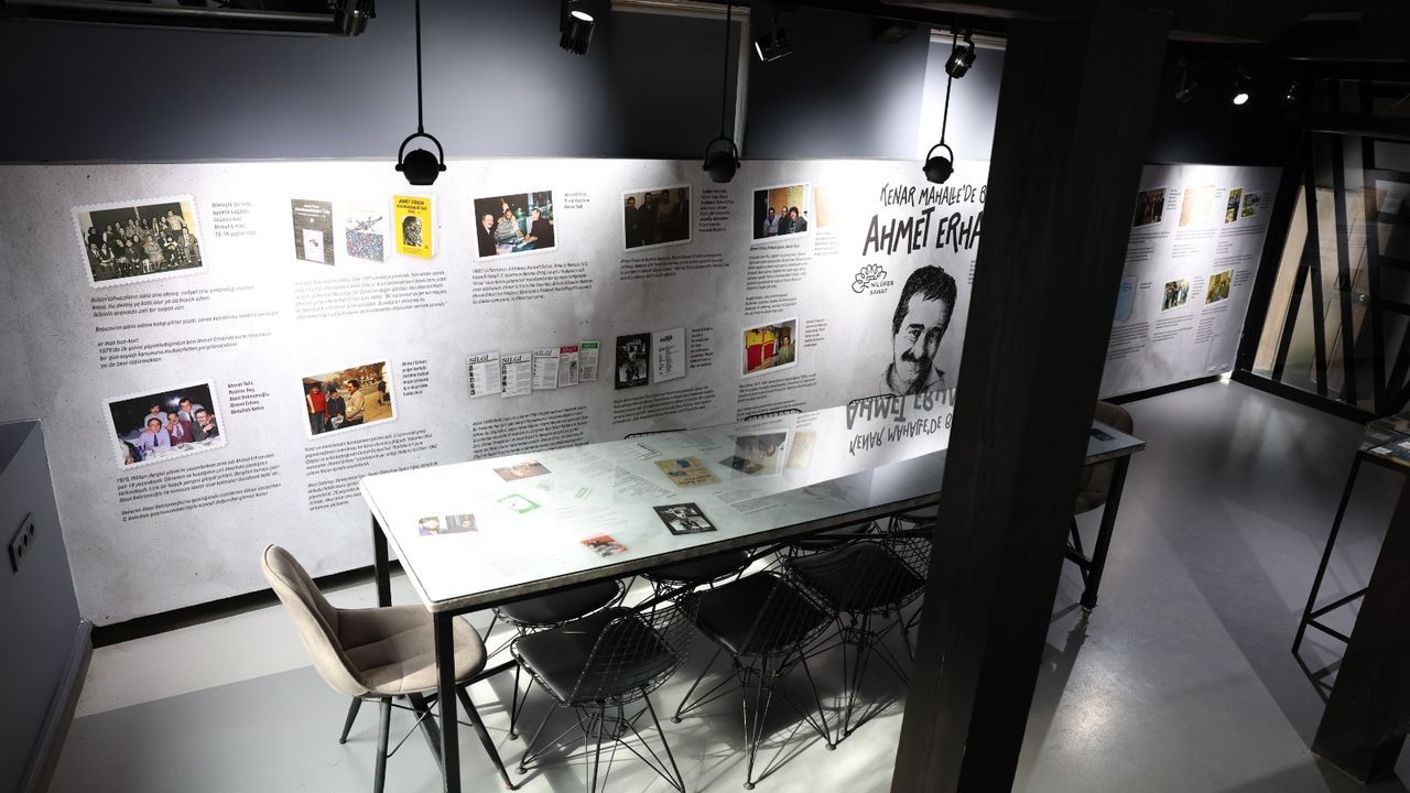 Açılışı yapılan 'Kenar Mahallede Bir Ahmet Erhan' sergisi, şairin dünyasına görsel bir yolculuk sunuyor. Küratörlüğünü C. Hakkı Zariç'in yaptığı sergide; Ahmet Erhan'ın kitaplarının ilk baskıları, kişisel fotoğrafları, mektupları ve özel eşyaları yer alıyor.