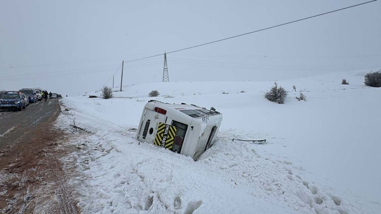 Sivas'ın Yıldızeli ilçesinde kar yağışı ve buzlanmanın etkisiyle bir öğrenci servisi kayarak şarampole devrildi. İlk belirlemelere göre kazada 13'ü öğrenci olmak üzere toplam 14 kişi yaralandı.
