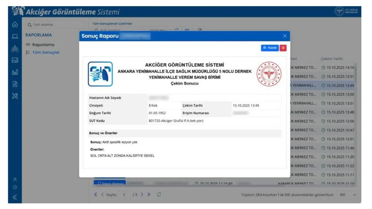 Sağlık Bakanlığı, tüberkülozun tanı ve izlem süreçlerini hızlandırmak amacıyla Akciğer Görüntüleme Sistemini devreye aldı. Yeni uygulama sayesinde, dispanserlerde çekilen akciğer grafileri artık dijital ortamda saklanıyor ve e-Nabız üzerinden hem hastalar hem de hekimler tarafından görüntülenebiliyor.